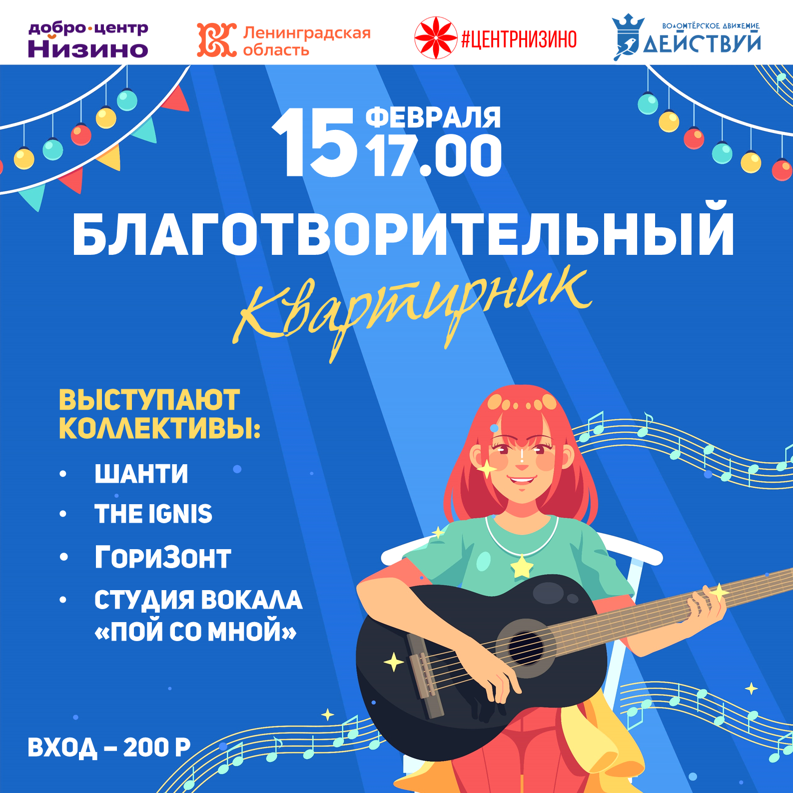 15 февраля в 17.00 Добро.Центр | Низино совместно с Волонтеры культуры | Ленинградская область проведут Благотворительный квартирник!